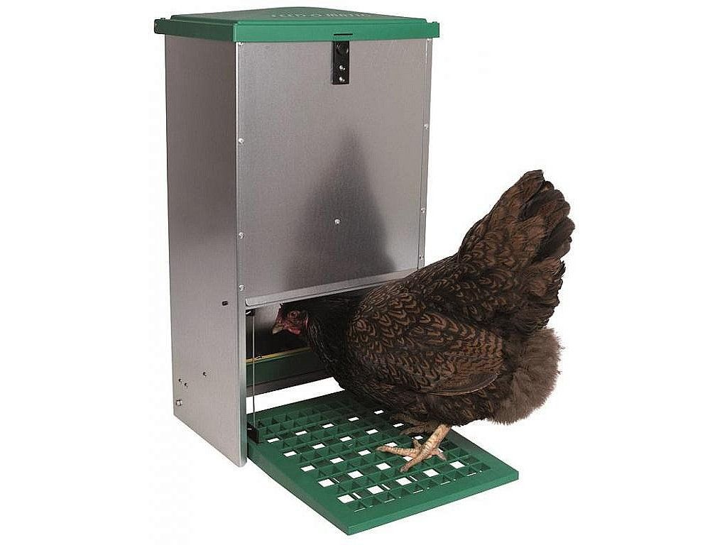 Při použití krmítka Feed-o-matic je potrava přístupná pouze tehdy, když slepice stojí na stupátku. Feedomatic chrání drůbež před nebezpečnými chorobami. Nášlapné krmítko je stabilní, snadno se čistí a je odolné proti stříkající vodě.